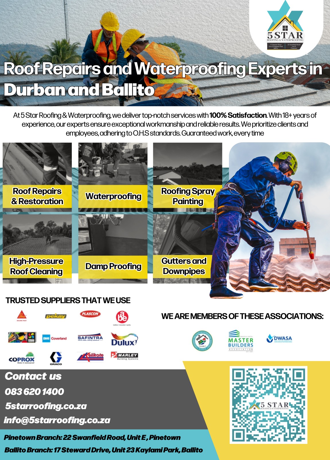 📞 031 463 2125 | 📱 083 620 1400 | 📧 info@5starroofing.co.za