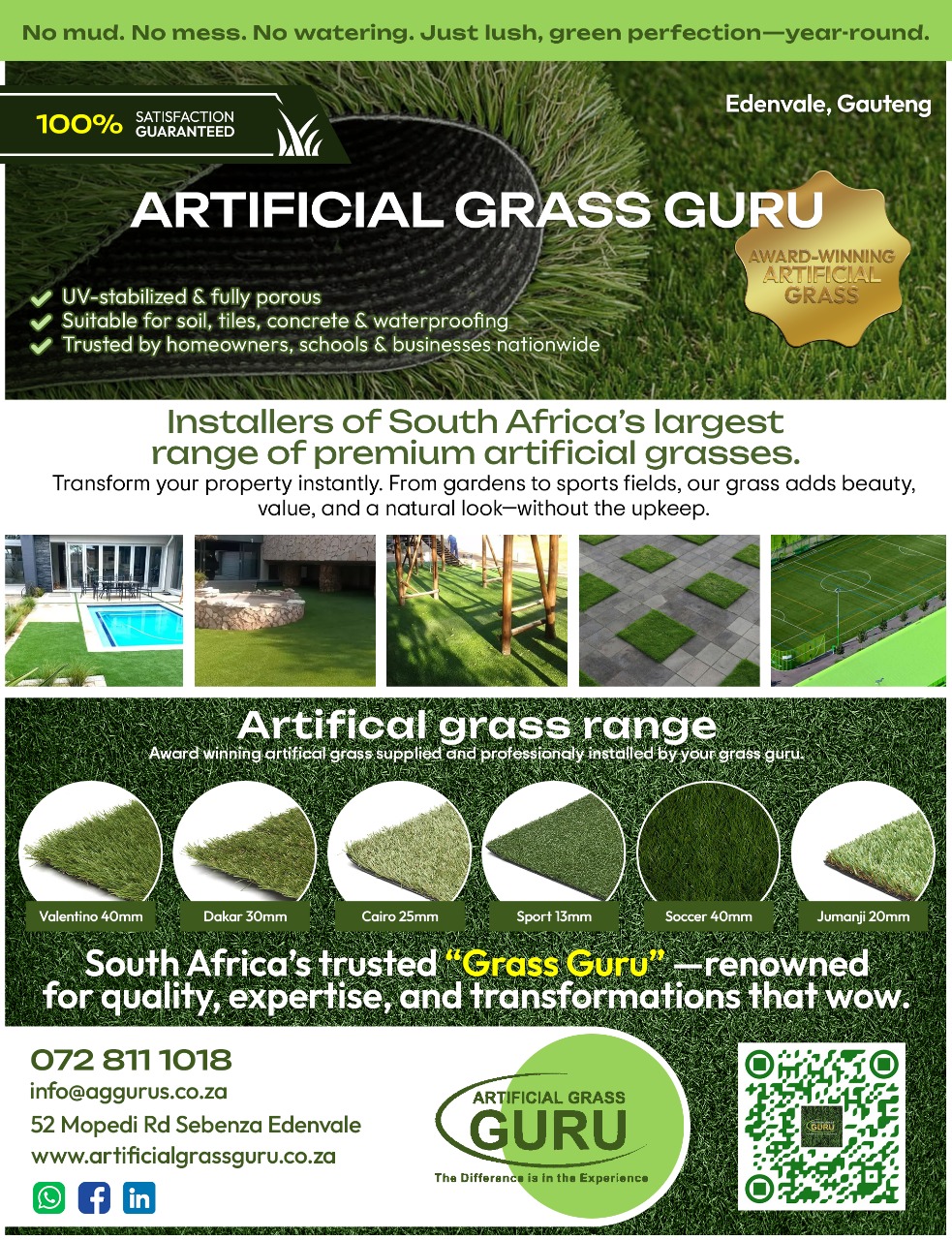 Installers of the largest range of quality artificial grasses available in South Africa.