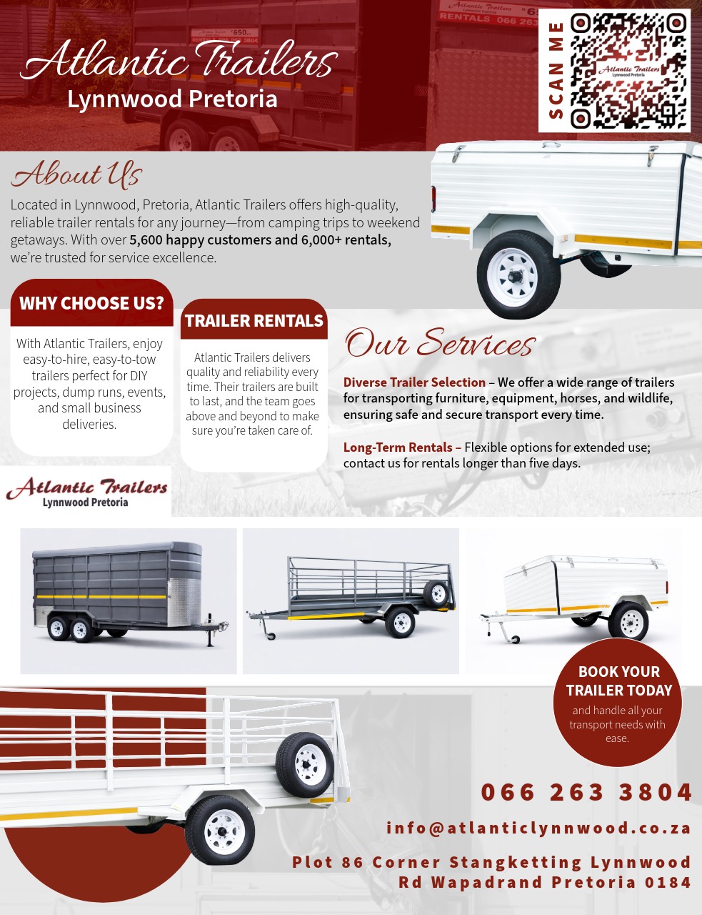 Located in the heart of Lynnwood, Pretoria, Atlantic Trailers is your premier destination for renting high-quality trailers.