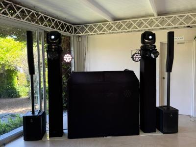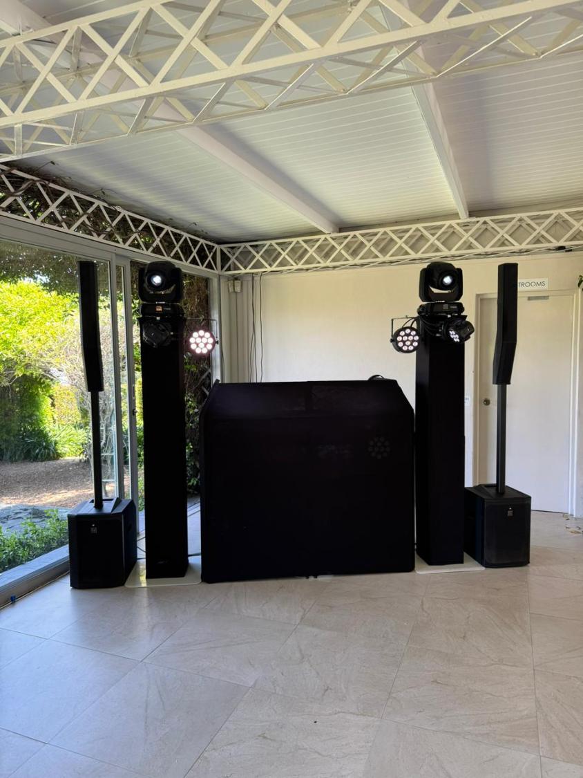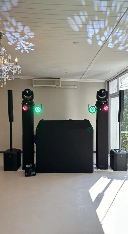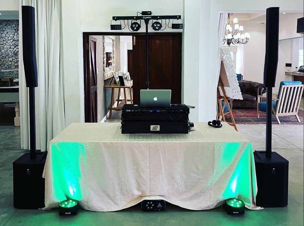 DJ Jinx uses premium gear (Pioneer RX3, EV Speakers, Shure Mics, Intimidator Lighting) and a clean, minimal setup that blends seamlessly into your space. No messy cables, no clutter - just quiet confidence and visual harmony. I’m very serious about keeping the booth as aesthetic as possible.