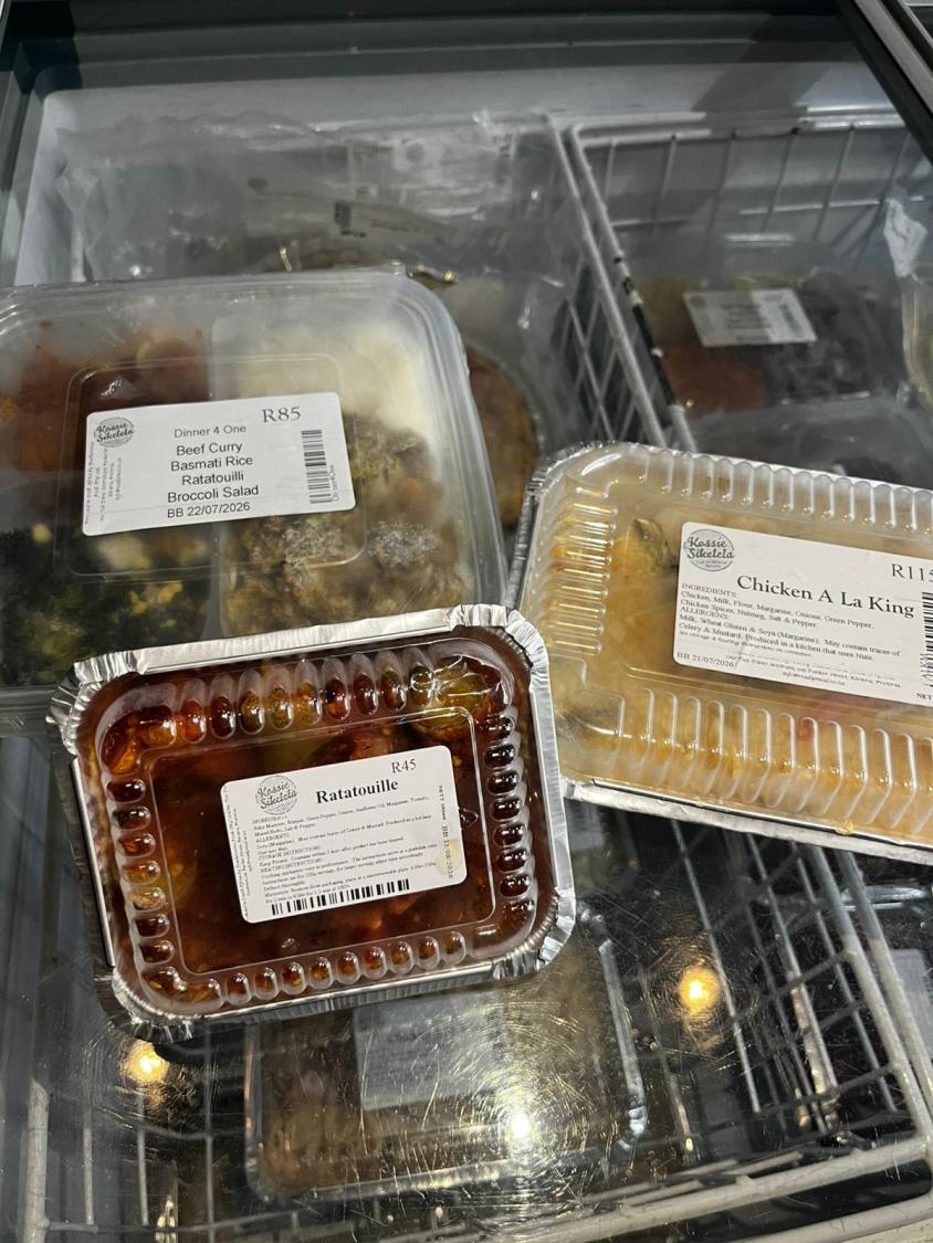 - Fresh and frozen ready to eat meals: Lasagne, bobotie, pies, quiches, vegetables and rice.