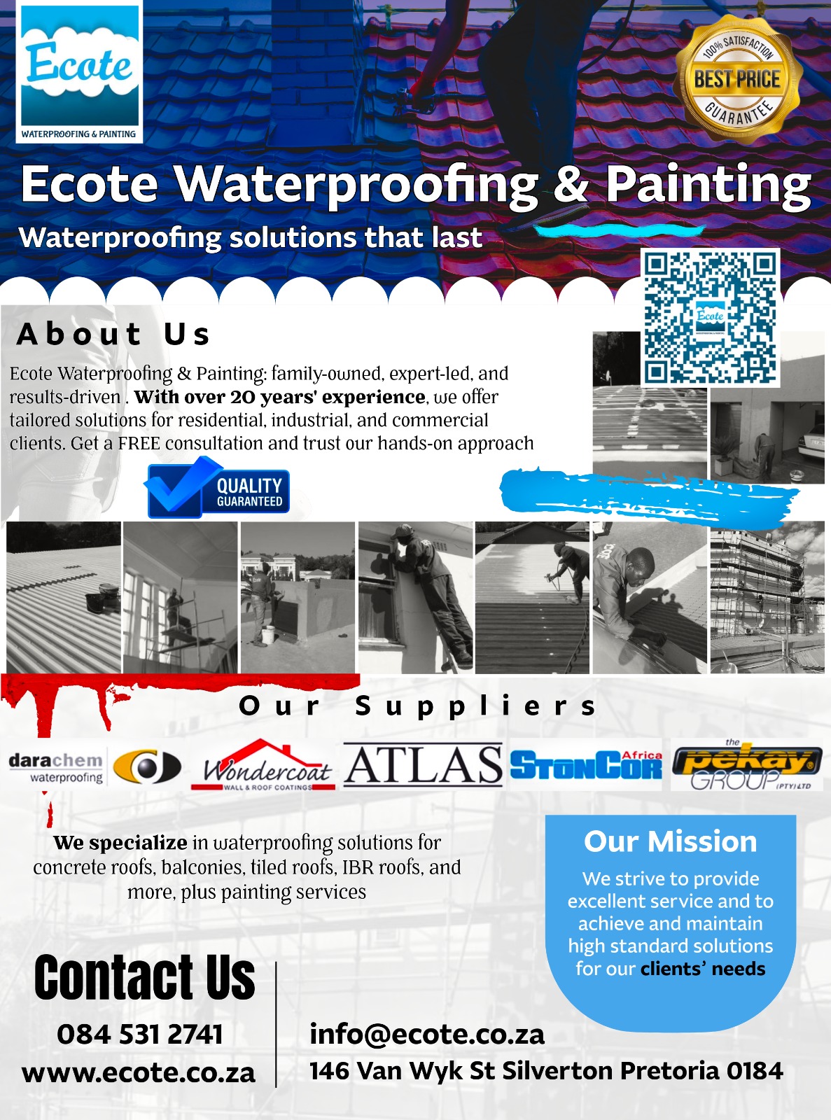 Thank you for the opportunity of introducing Ecote waterproofing & painting.