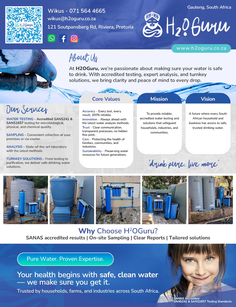 - Accredited Laboratory: The laboratory is SANAS-accredited and specifically designed for drinking water chemistry and microbiological analysis.
