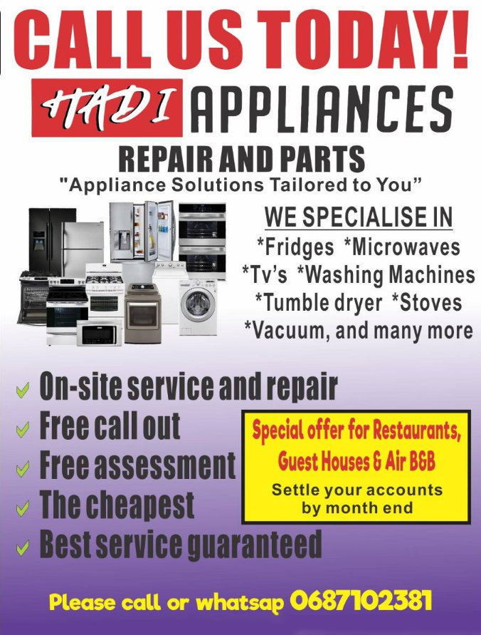 We fix or repair all brands of Home Electrical Appliances onsite namely: