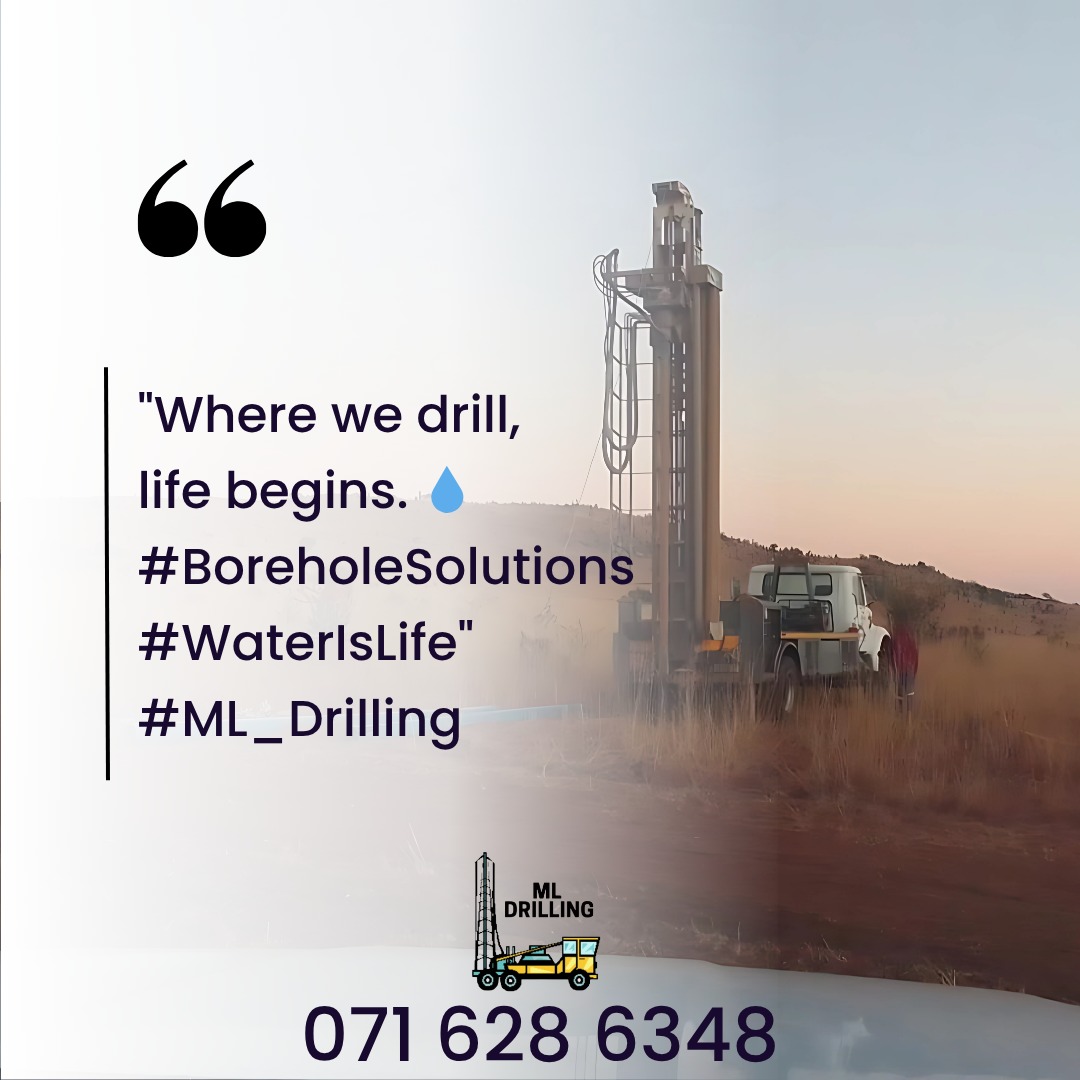 At ML Drilling, we understand the critical importance of access to clean water. Every borehole we drill, every tank we install, and every pump system we implement is a step toward water security and sustainability. We believe clean water transforms lives – whether for domestic use, agriculture, community development, or business operations.