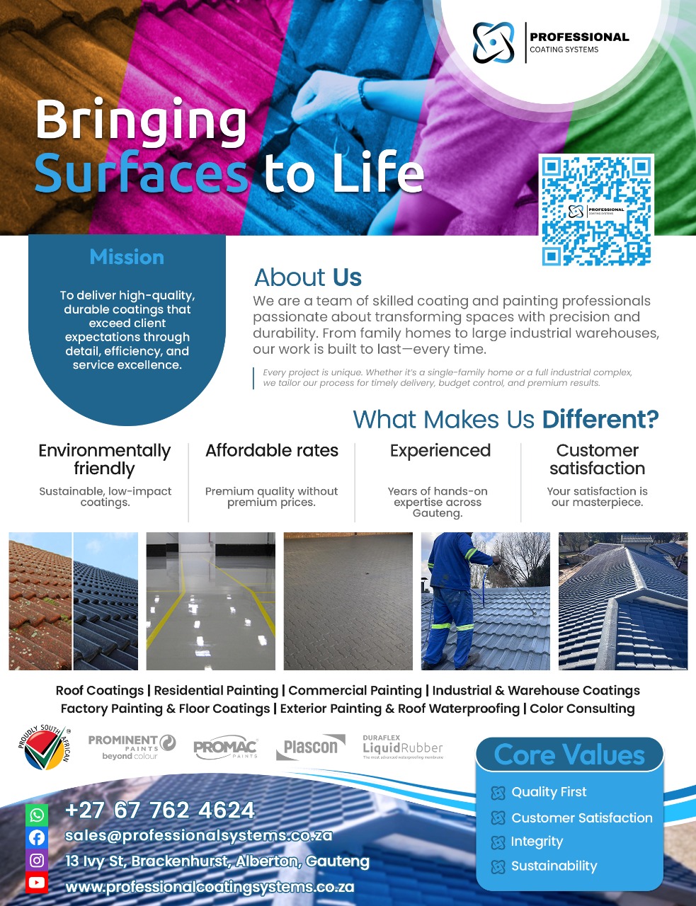 At Professional Coating Systems, we are your trusted partner in bringing life, protection, and beauty to your surfaces.