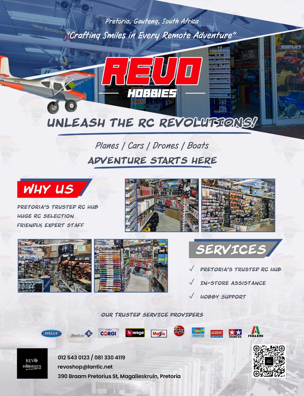 Here at Revo Hobbies we specialize in everything RC. We have planes, boats, drones and cars for those who love thrill and adventure