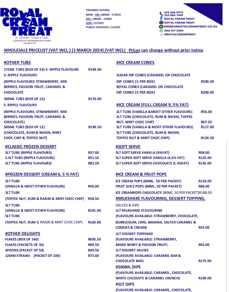 Royal Cream Treat crafts premium ice cream using time-tested European recipes and the finest ingredients, all at an unbeatable price.
