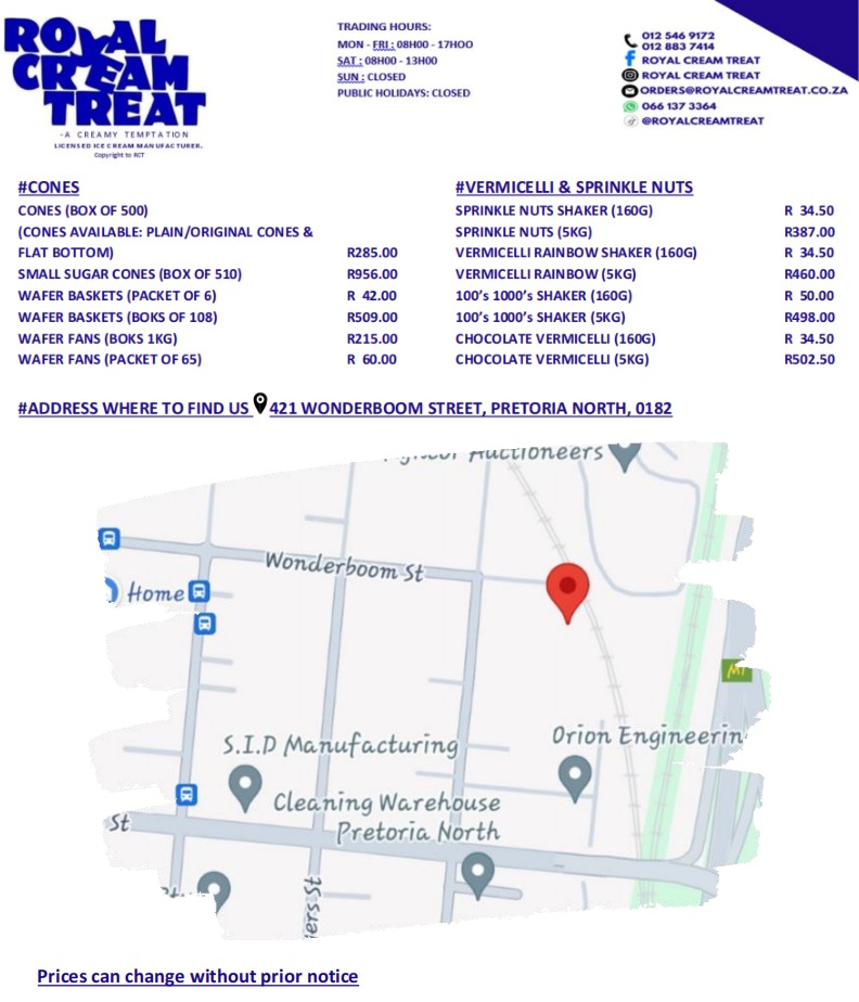 Royal Cream Treat proudly serves a diverse range of clients across Gauteng, focusing on restaurants, catering professionals, supermarkets, informal traders, and a network of trusted distributors.