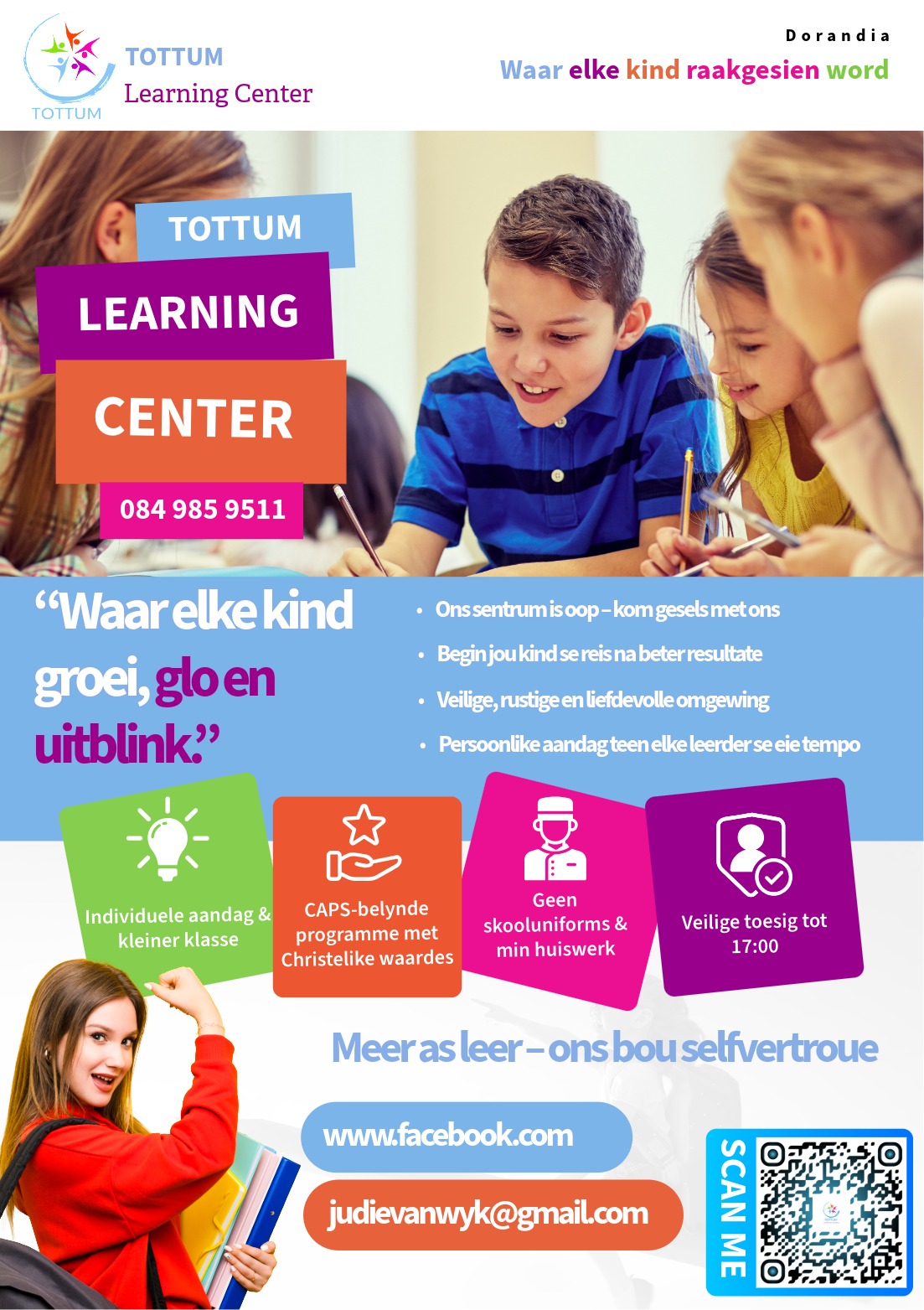 Welkom by Tottum Leersentrum – ’n plek waar jou kind nie net leer nie, maar ook groei, ontwikkel en floreer in ’n veilige, rustige en liefdevolle omgewing.